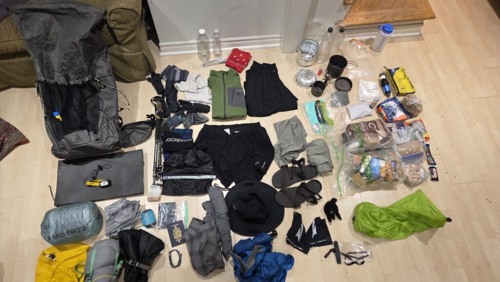 Spent much of today getting gear ready. The photo below shows pretty much everything I will be carrying in my