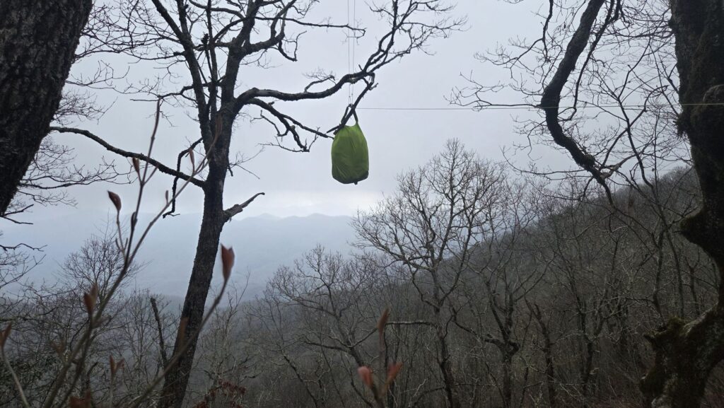 I was thinking of continuing and walking until the next campsite which wasn’t a shelter, but I decided to stop at Cold Gap partly to ensure that I had some social time. I spent a little bit of time talking with people at the shelter before going to look for my tent site. Then I made my dinner, another conure side, with added noodles and Olive oil, but this time I poured the boiling water into the bag so that I don’t have to wash the pot. This is a big Improvement since I don’t really feel like doing dishes at the end of a long day of hiking. Once I had my bear hang up and the tent all done, I took my dinner down to the shelter and sat around and talked with four or five others, ranging an age from probably 20 to my age. It was delightful. It’s nice to be making this more of a social event. Even though I might not see many of these people for more than a couple more days it’s still nice to just socialize.