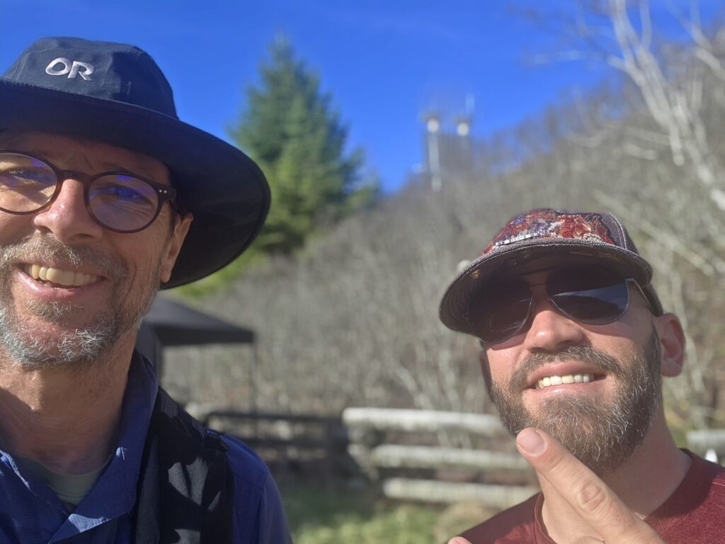I climbed up Big Bald ralking to Fozzy, a thirty-something landscape architect who quit his job to hike and to plan how to start his own business when he’s back from trail.